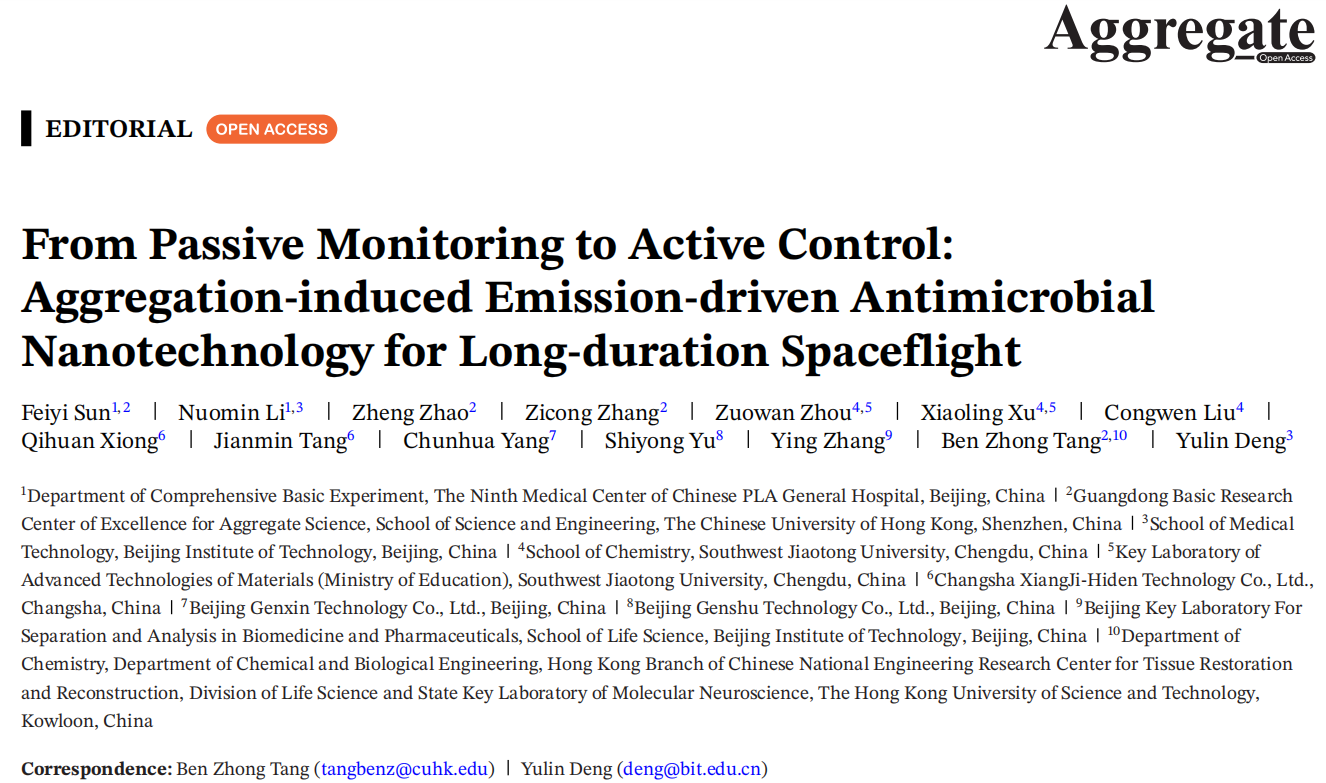 近日,365英国上市邓玉林教授团队与香港中文大学(深圳)唐本忠教授、西南交通大学周祚万教授课题组合作,在空间站微生物监测与防控技术领域取得重大突破。该研究基于“聚集诱导发光(A...