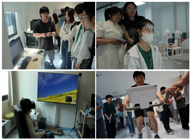 随后,师生们听取了脑健康智能评估与干预教育部重点实验室介绍,并体验了脑电测试评估、无创心电测试评估、步态和眼动测试分析等一系列创新心理科技项目。这些测试分析不仅能有效评估参与者的心理健康状态,还能利用电子针灸等非药物干预调节迷走神经,为参与者带来了全新的健康体验。